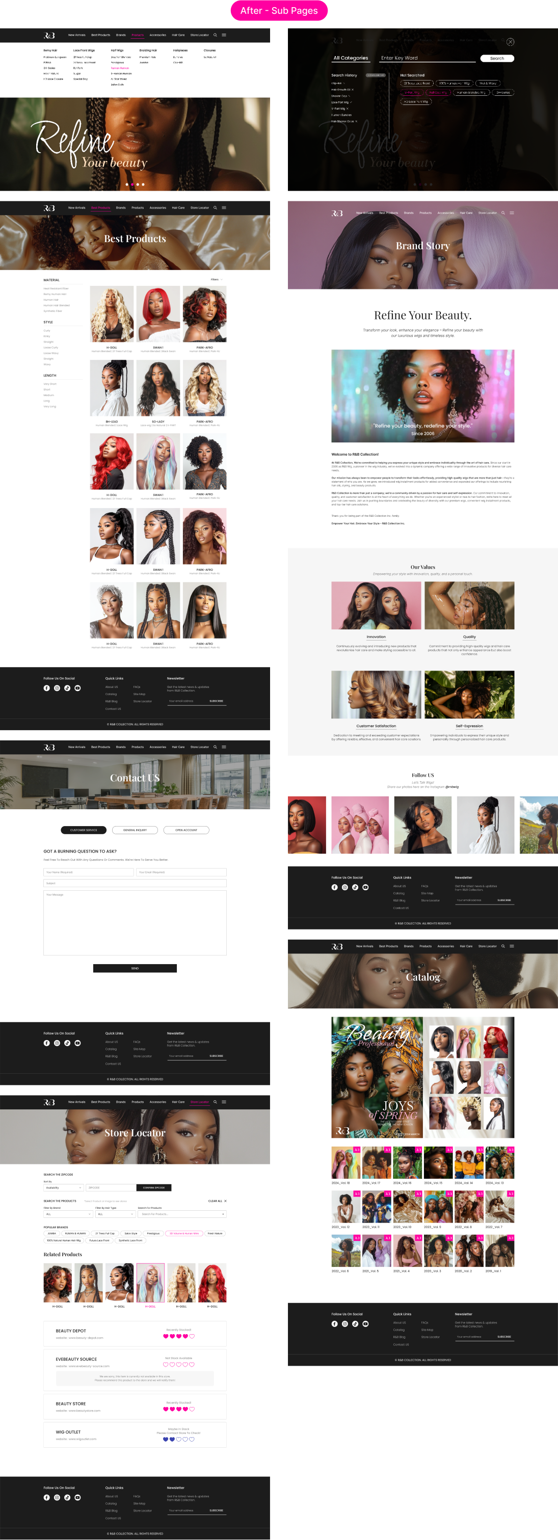 To support the R&B website redesign, we conducted goal-oriented usability testing with key user groups including African-American consumers, beauty store owners, managers, and sales staff. The results revealed consistently positive feedback regarding mobile usability, information structure, and product accessibility, along with valuable suggestions for future improvements.Following the redesign, we implemented a WordPress analytics plugin to track user behavior such as traffic sources, search keywords, and bounce rates.